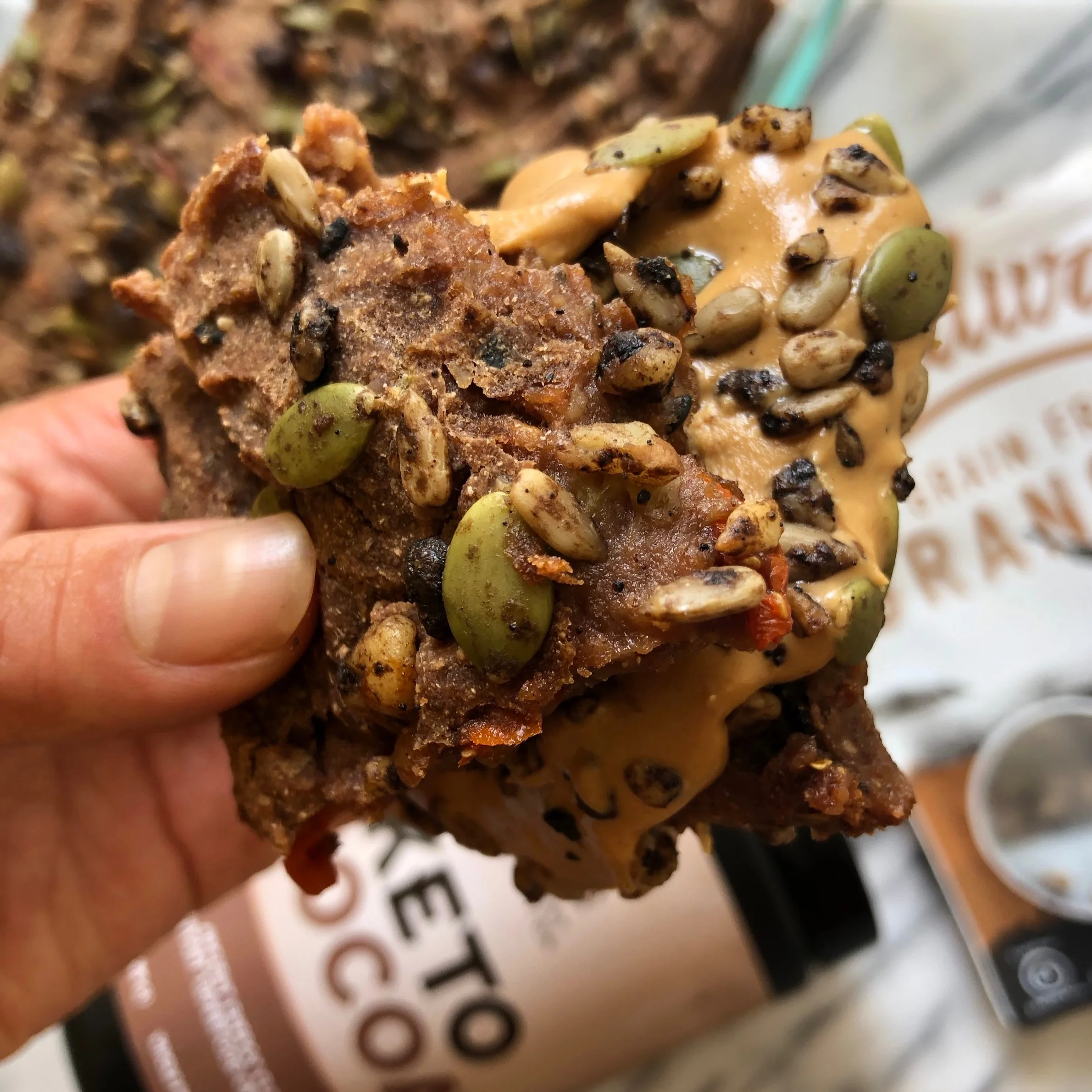 So this Paleo Applesauce Snack Bread was born. My favorite way to eat it? Make a snack sammie with Georgia Grinder’s cashew butter and more Wildways vanilla bean espresso granola for an afternoon snack, eaten in between gulps of cold almond milk.