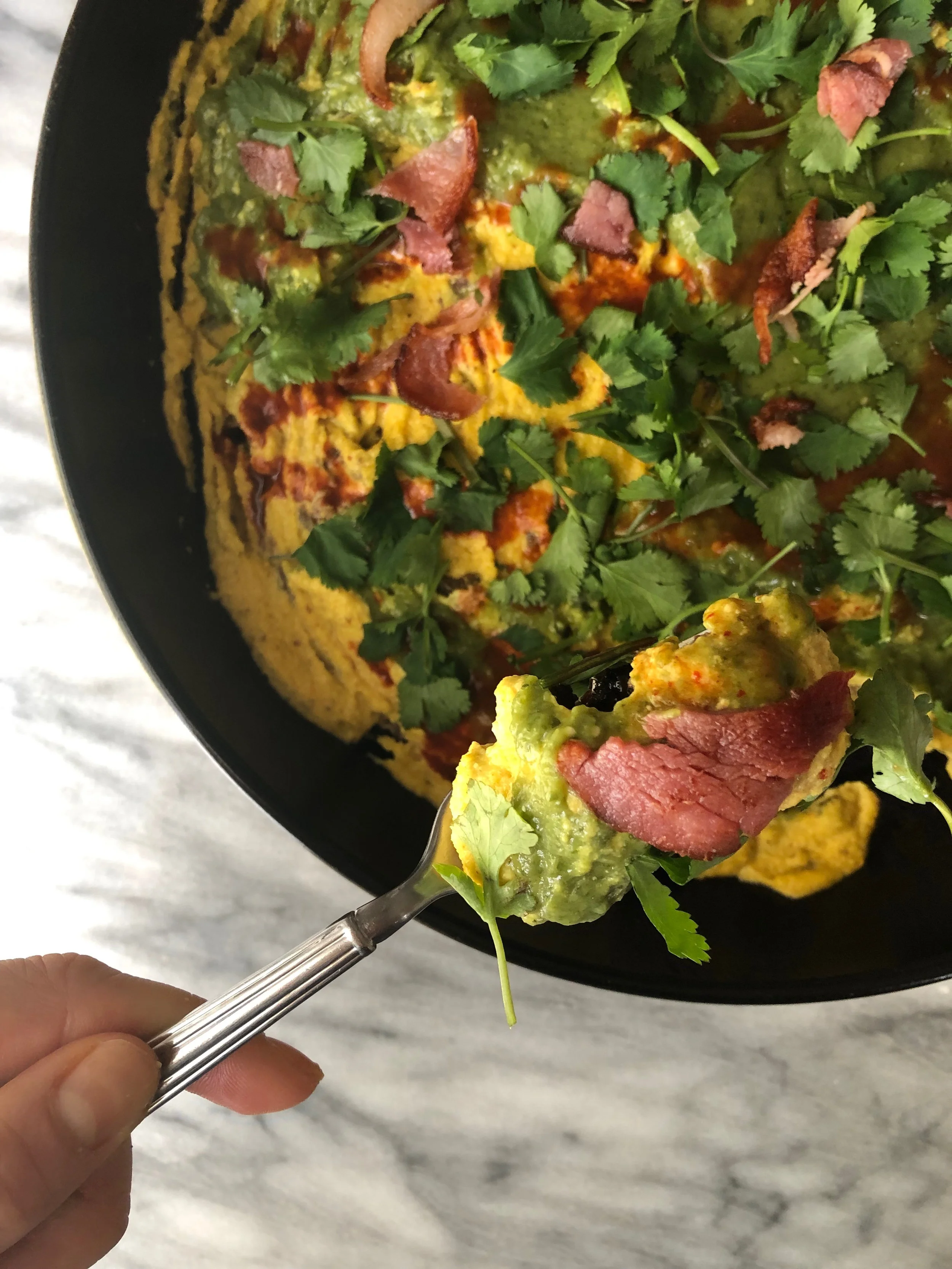 Serve with sweet potato chips (I like the Bare baked chips), tortilla chips (I like the Siete Foods grain free chips) plantain chips (I love the Barnana chips), cassava chips (I like the Plant Snacks chips), bacon chips (Paleo Hacks has a great bacon chip recipe here), gluten free crackers (Simple Mills has some great almond flour ones), or just by itself (I ate the leftovers for lunch on top of arugula )... the possibilities are endless!